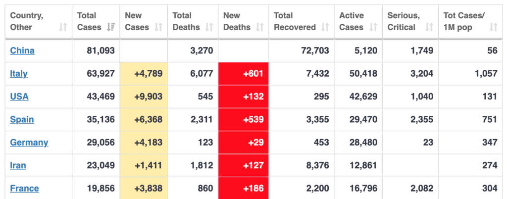 リアルタイムで国別・州別で感染状況がとてもわかりやすく確認できるサイトです。https://www.worldometers.info/coronavirus/カテゴリー: 生活 marchin0k米国在住歴28年。IT企業のITディレクター・セキュリティプロフェッショナル。Torranceの日系サッカークラブコーチ。趣味は誰もいない自然の中でのワイルドキャンプ、アウトドアスポーツ、料理。一番のストレス解消法は掃除と断捨離。実践している習慣はミニマリズム、毎日6キロのランニング、10年近く続けている空手、腹筋ローラーの立ちコロ。
